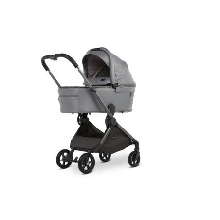 La nacelle se fixe solidement au châssis des poussettes Mast Swiss Design grâce à des adaptateurs dédiés. Les boutons à mémoire permettent un retrait facile et rapide, idéal pour simplifier le quotidien des parents.
