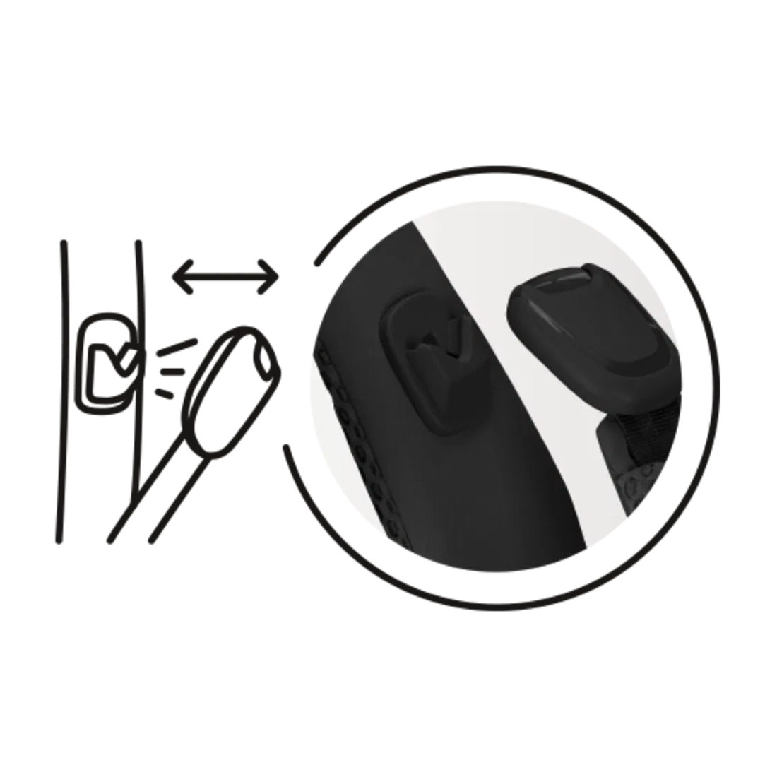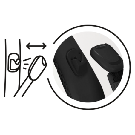 Les boucles magnétiques Click-&-Go garantissent une installation rapide et intuitive. Une fois enclenchées, elles ne s’ouvrent que via un bouton de sécurité, assurant un maintien fiable.