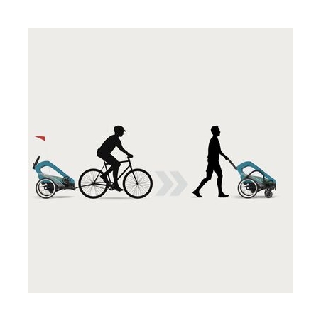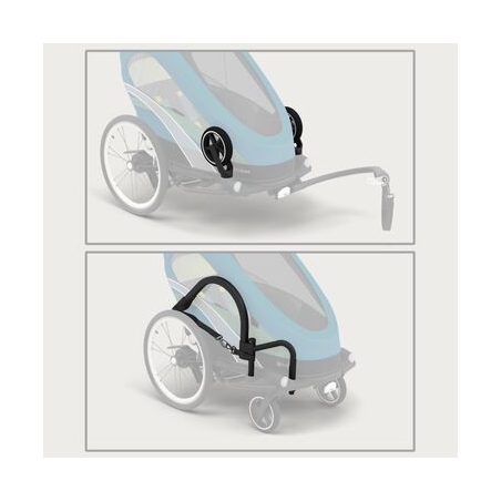 Passez du mode vélo au mode poussette en quelques secondes grâce au système de rangement intelligent du kit sport (barre de traction et roues pivotantes). Idéal pour alterner entre balade urbaine et sortie à vélo.