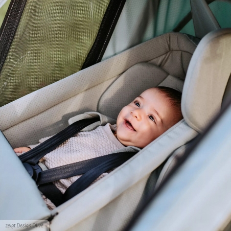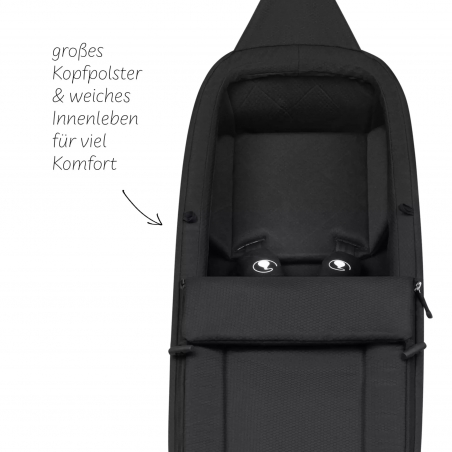 L’insert pour bébé garantit un couchage ergonomique à plat et une grande surface de sommeil protégée par des parois latérales hautes et un fond stable. Le matériau CozyCloud® doux et respirant soutient le dos, assure une ventilation optimale et crée un climat de bien-être sain pour votre enfant. La zone sensible de la tête et du cou est protégée par un coussin rembourré, offrant un soutien maximal.